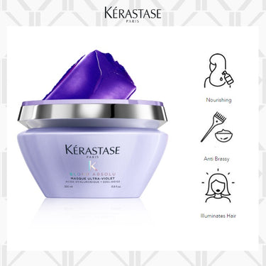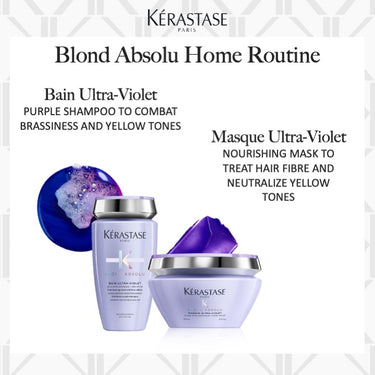 Ideal for lightened, highlighted cool blonde hair in need of neutralization, this rich purple mask penetrates the fiber to remove unwanted yellow undertones and brassiness, while deeply hydrating and restoring hair strands. The powerful combination of Hyaluronic Acid and Edelweiss flower soothes hair, protecting it from daily oxidation and polution particles. This non-staining hair mask can be used once a week, or as often as needed to neutralize brassy tones and keep your blonde hair luminous & cool.