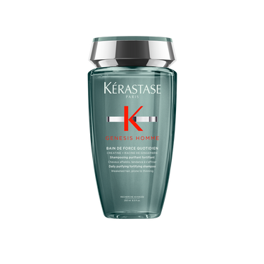 This deep cleansing shampoo for men purifies scalp and hair with a cooling sensation to remove impurities, dirt, and oil while strengthening weakened hair that is prone to thinning. 92% of consumers agree that Bain De Force shampoo leaves the scalp feeling deeply cleansed* and 80% of consumers agree that their hair feels stronger*. Bain De Force shampoo is formulated with Creatine and Ginger Root to strengthen hair fibers.