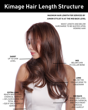 - Maximum hair length for Junior Stylist service is at the mid-back.